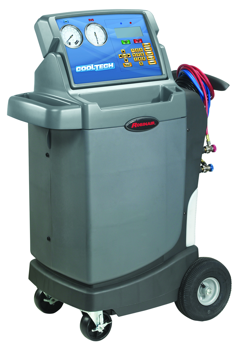 Features: A/C system flush: Flushes a vehicle’s A/C system with refrigerant eliminating any residual oil or other liquid. (Flushing adapters - not included)Automatic Air Purge: Eliminates damaging air without monitoring gauges or opening valves.Automatic Oil Drain: A display reminds you to empty the graduated container to show the amount of oil to replace.Automatic Refrigerant Refill: Maintains a user-selectable amount of refrigerant in an internal vessel and signals with it’s time to change supply tank, no monitoring required.Display: MultilingualFully-Automatic Function: Program to recover, vacuum, leak test and charge without operating panel valves.Refrigerant & Oil Database: For North American market vehicles 1994 - 2007 (updates available mid-2008).OptionalRefrigerant Charging: Select a charge mode from high or low side.High/Low/BothRefrigerant Management System: Displays refrigerant use and monitors remaining filter life. Prompts appear when 1/3 of filter life remains.Vacuum Feature: Defaults to 15 mins, programmable up to 99 mins. “Remaining time” is displayed.Vacuum Leak Test: Monitors level after evacuation, informs of possible leak.Image: